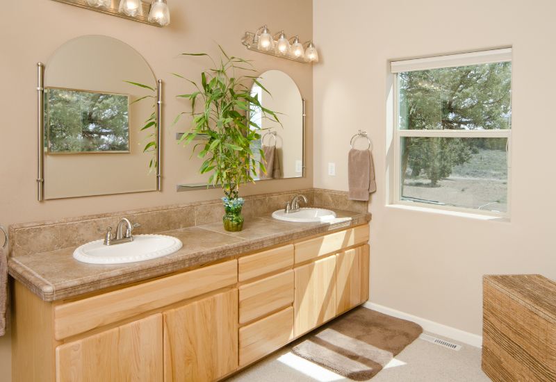 Large mirrors: Enhance the sense of space and reflect light for a brighter bathroom.